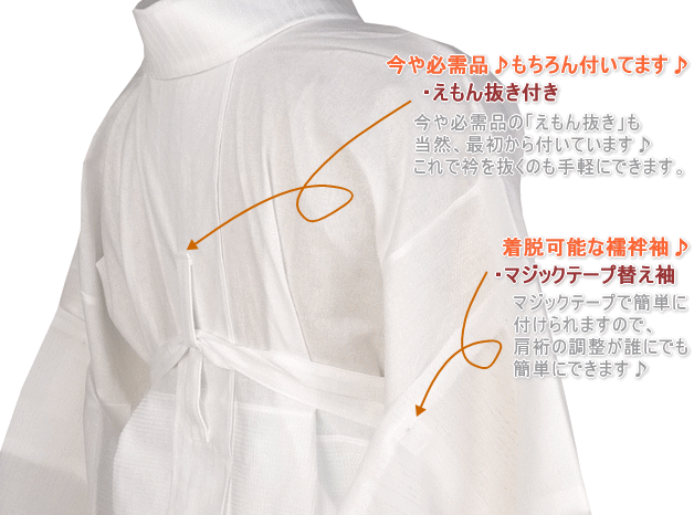 さらに!「無双袖」はマジックテープで簡単に着脱可能! 肩裄の調整も自由自在! でも、あくまで、めんどくさがり屋さんが楽して着物を楽しむための商品です・・・。